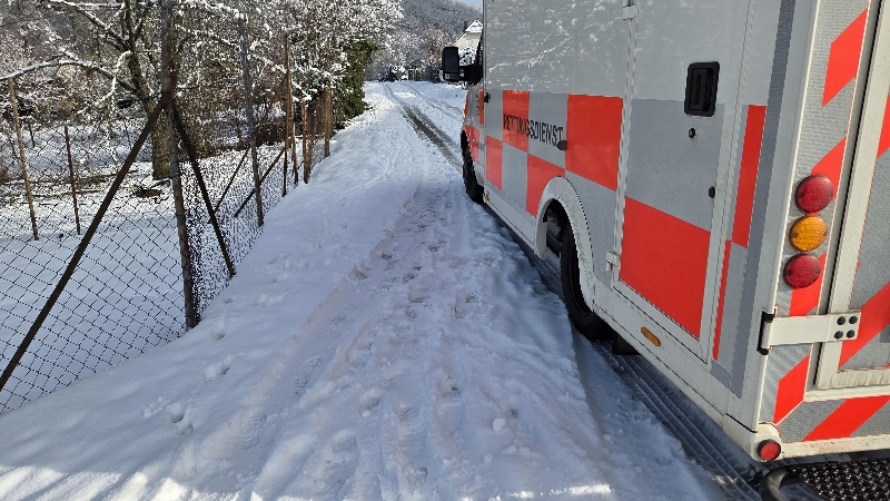 Aufgrund der engen Eingangsverhältnisse und der Witterung haben wir den Rettungsdienst beim Transport eines Patienten aus seiner Wohnung in den RTW unterstützt.